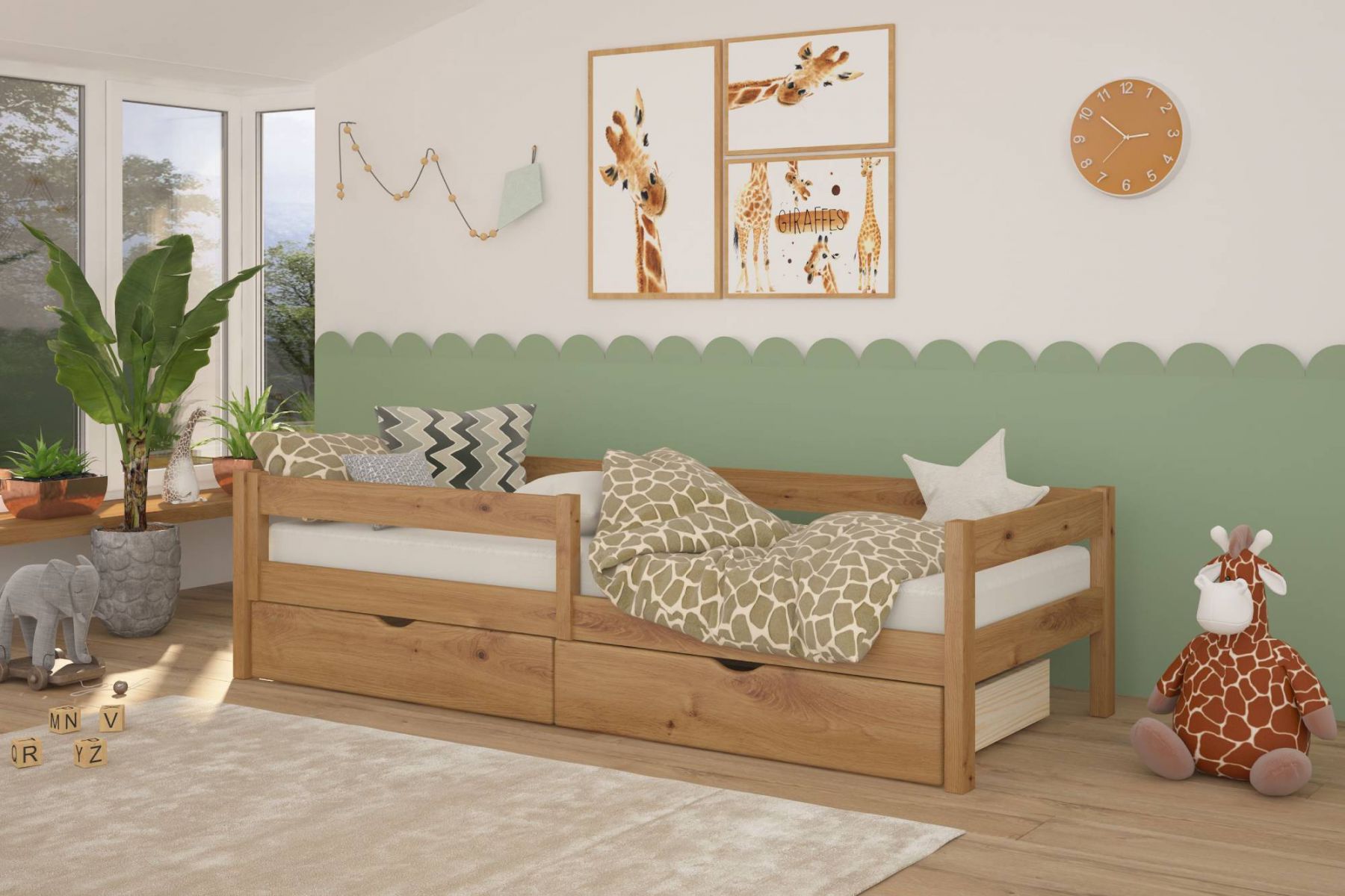 Дитяче ліжко Mebigrand Атланта Літл Горіх світлий 80х190 см з бортиками та ящиками (DMBG-2698)