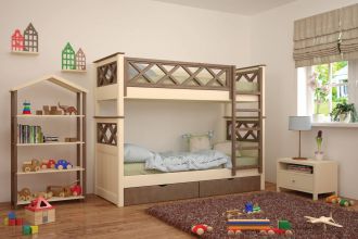 Двоярусне дитяче ліжко Mebigrand Мальта Айворі + Горіх лісовий 80х190 см з ящиками (DMBG-2305)